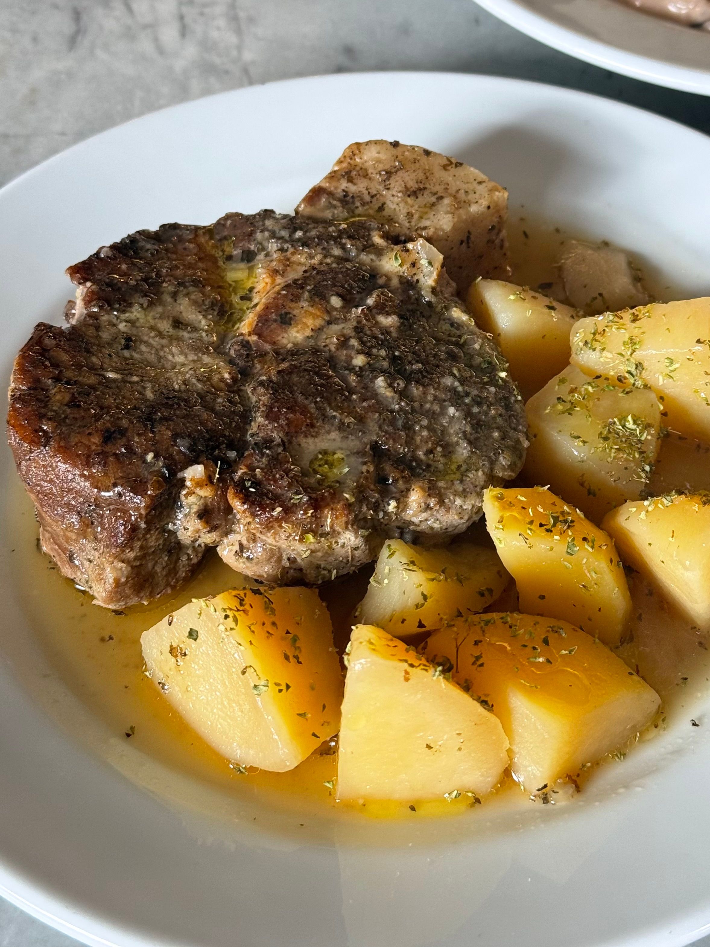 Finally, succulent pork collars have been braised with potatoes, lemon and oregano. Infused with the enthusiasm of a rather wonderful week in Athens.